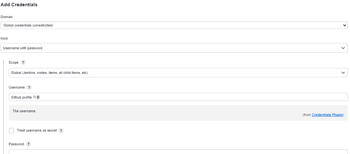 Credentials 밑에 Add 선택 후 Jenkins 선택