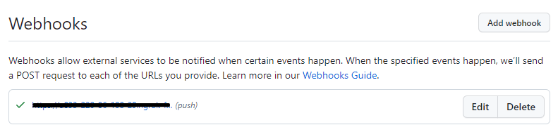 배포 할 리포지토리 접속 후 Settings 에서 Webhooks 접속