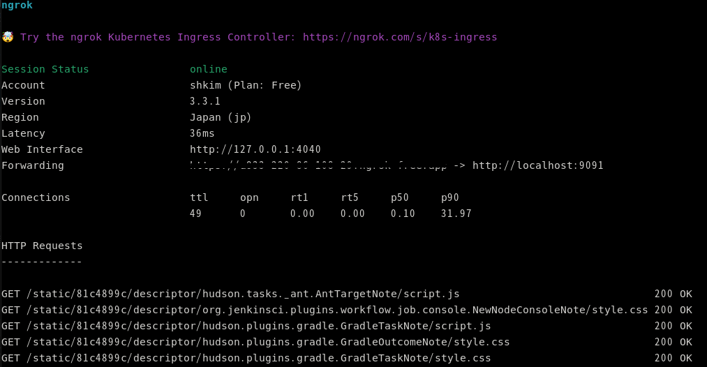 Forwarding 에 적힌 주소로 외부에서 접속 할 수 있음.