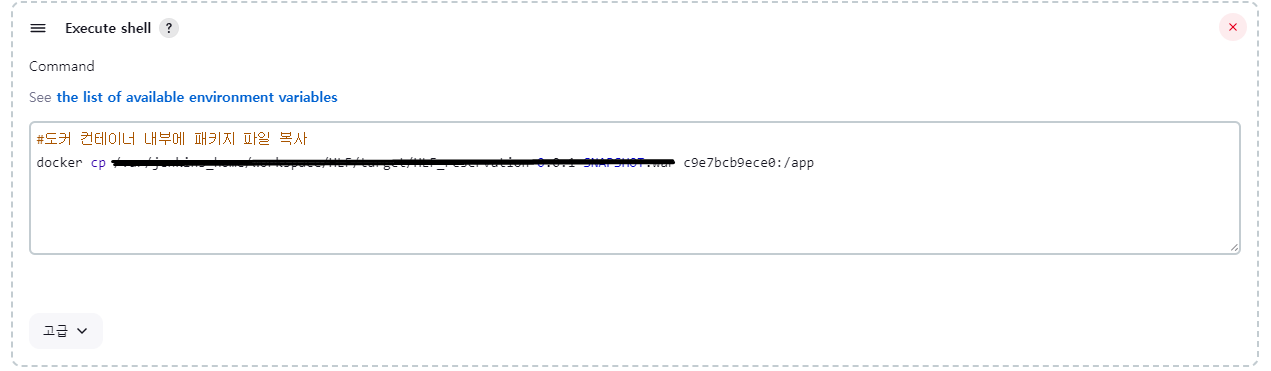 Add build step 클릭 후 Execute shell 선택 후 명령어 입력.