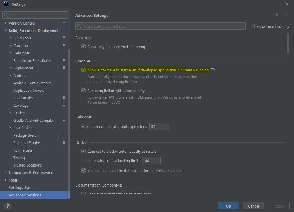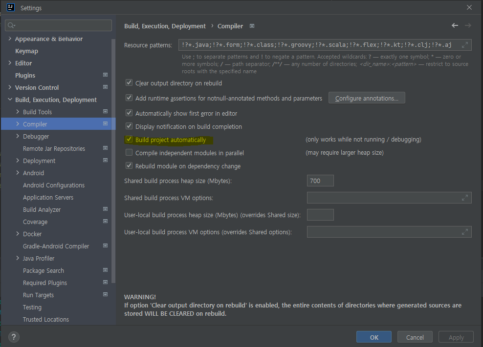 2. Build, Exeution, Deployment > Compiler > Build project autiomaically 체크