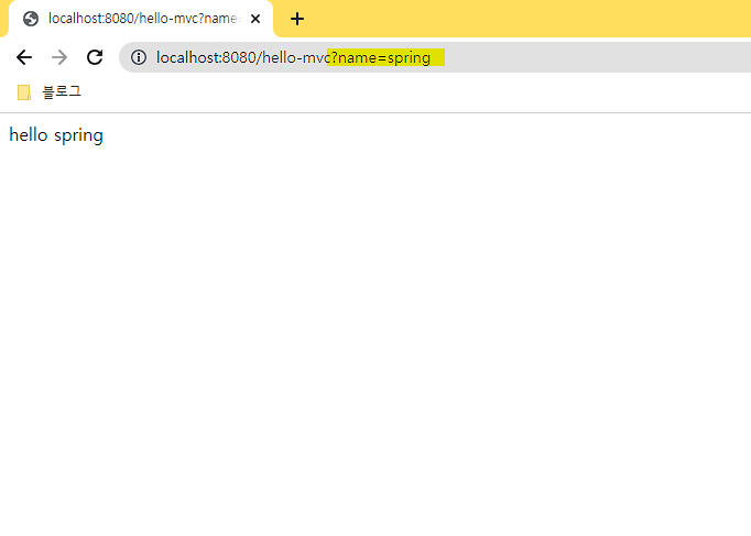 http://localhost:8080/hello-mvc?name=spring 값 입력 = 정상출력